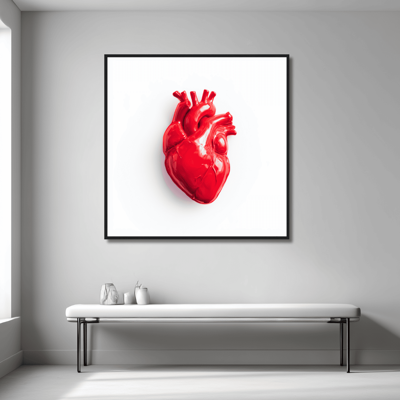 An anatomically perfect heart, gleaming like plastic but pulsing with unspoken emotion.