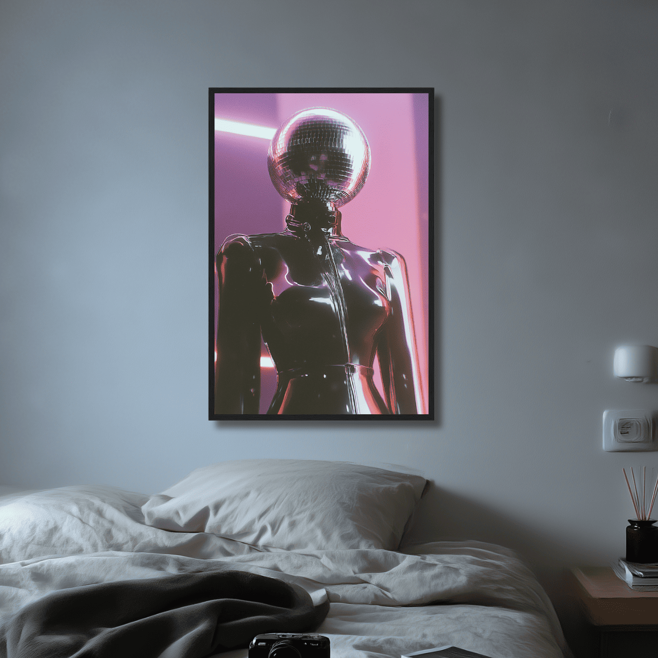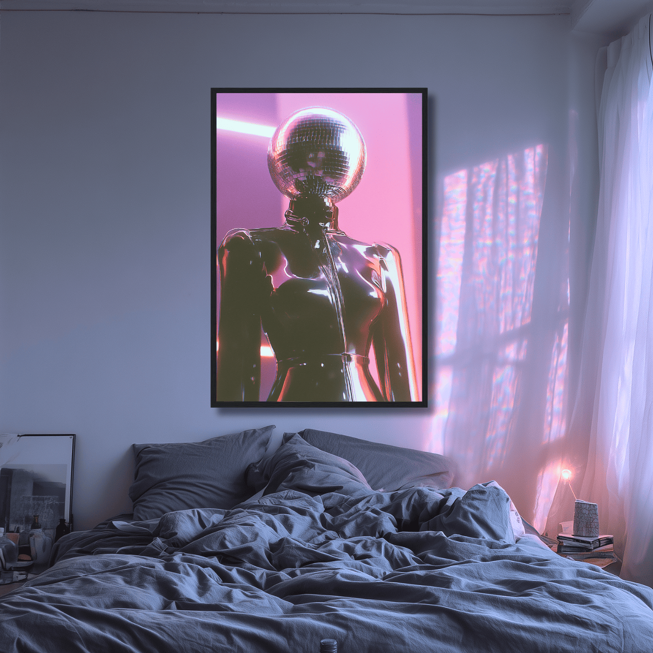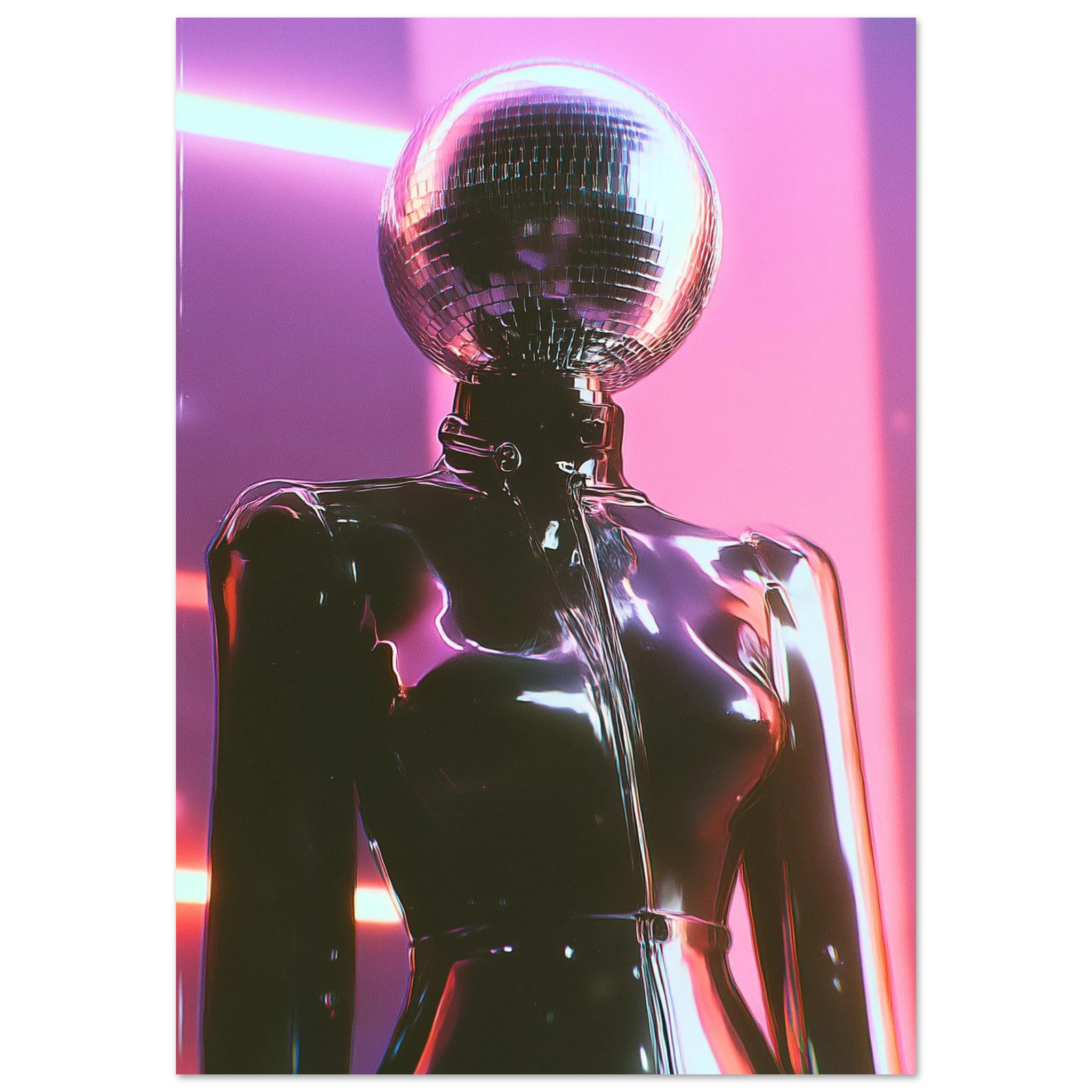 She doesn’t just attend the party, she is the party. With a chrome body reflecting every neon fantasy and a disco ball for a head, this figure becomes the embodiment of nightlife itself.