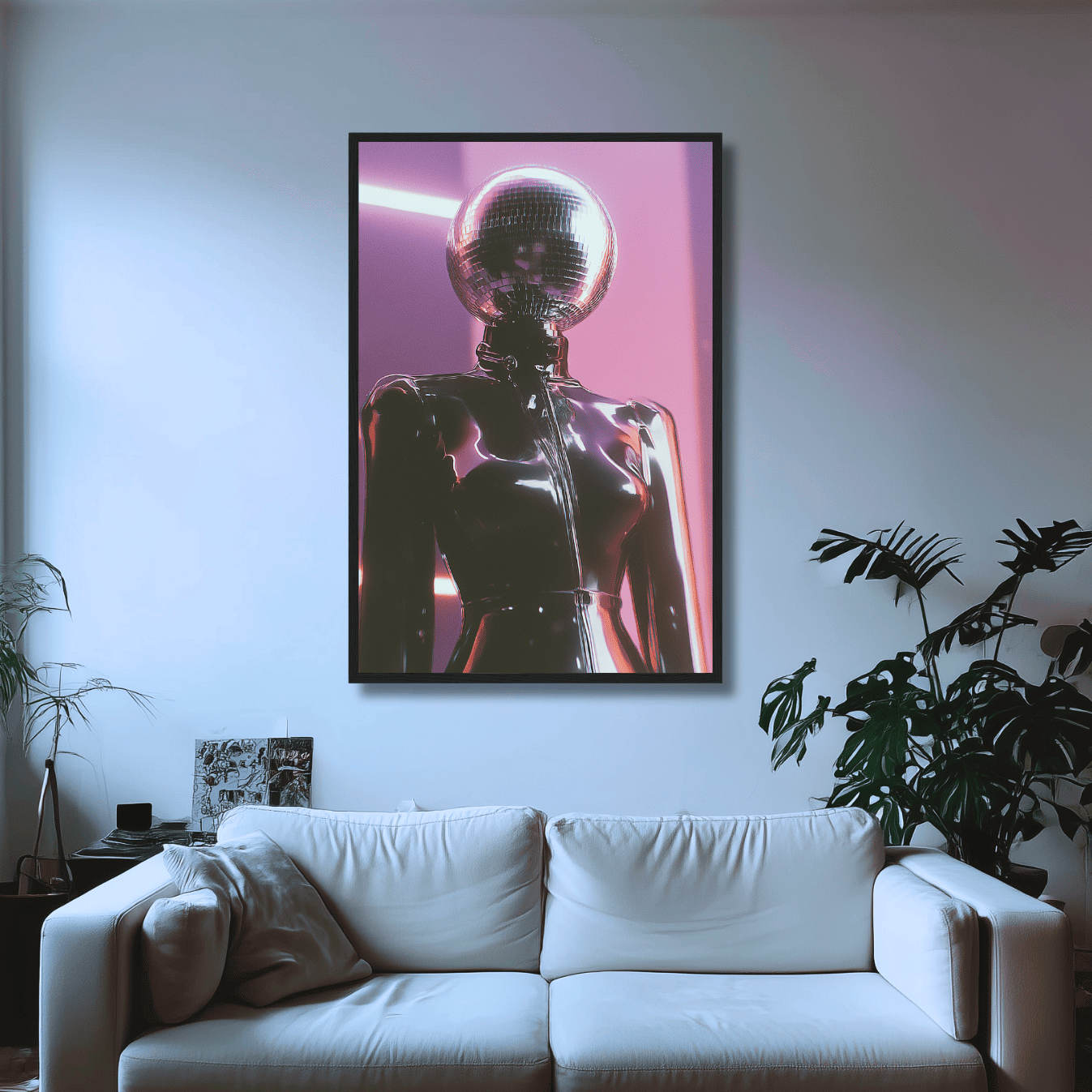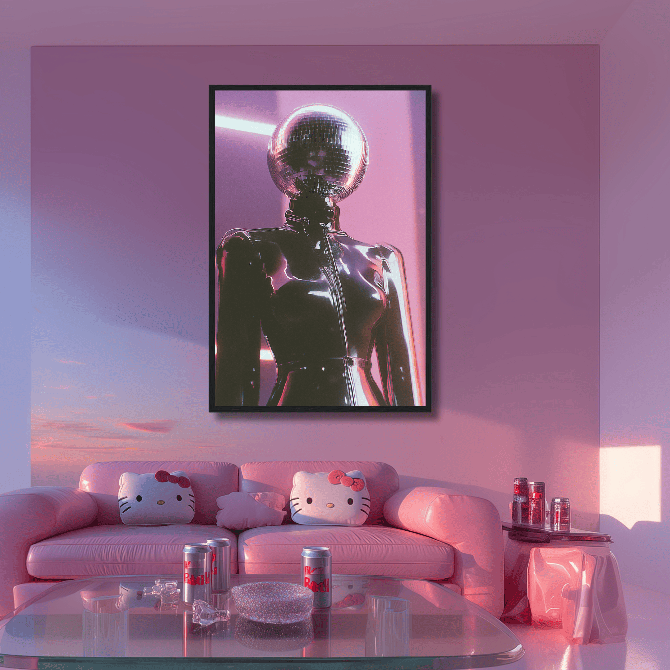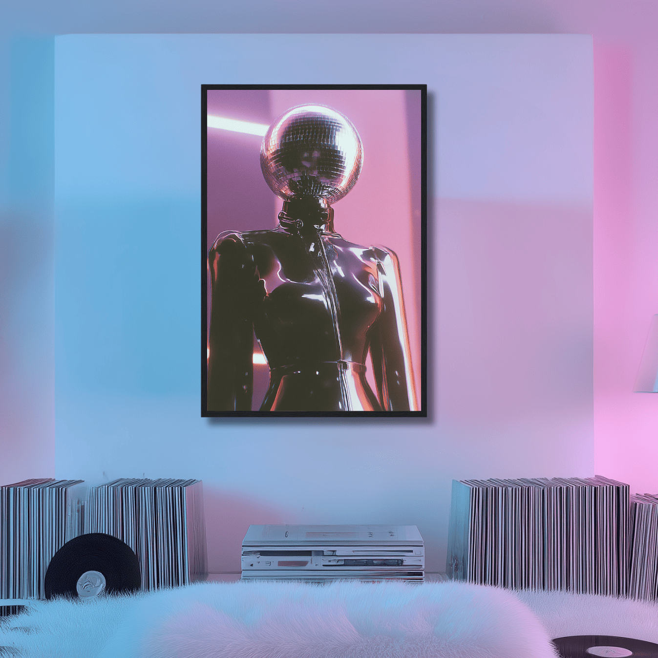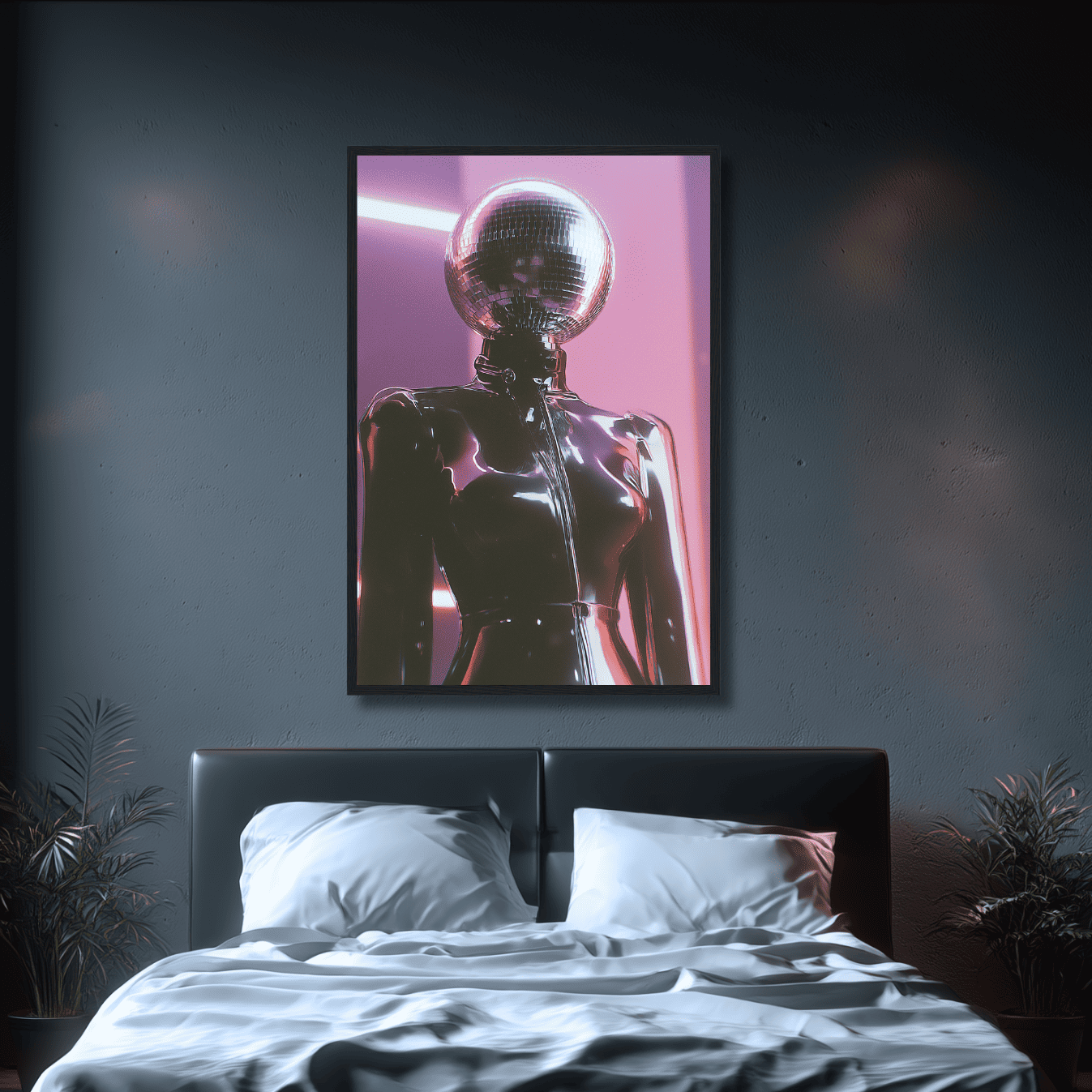 She doesn’t just attend the party, she is the party. With a chrome body reflecting every neon fantasy and a disco ball for a head, this figure becomes the embodiment of nightlife itself.