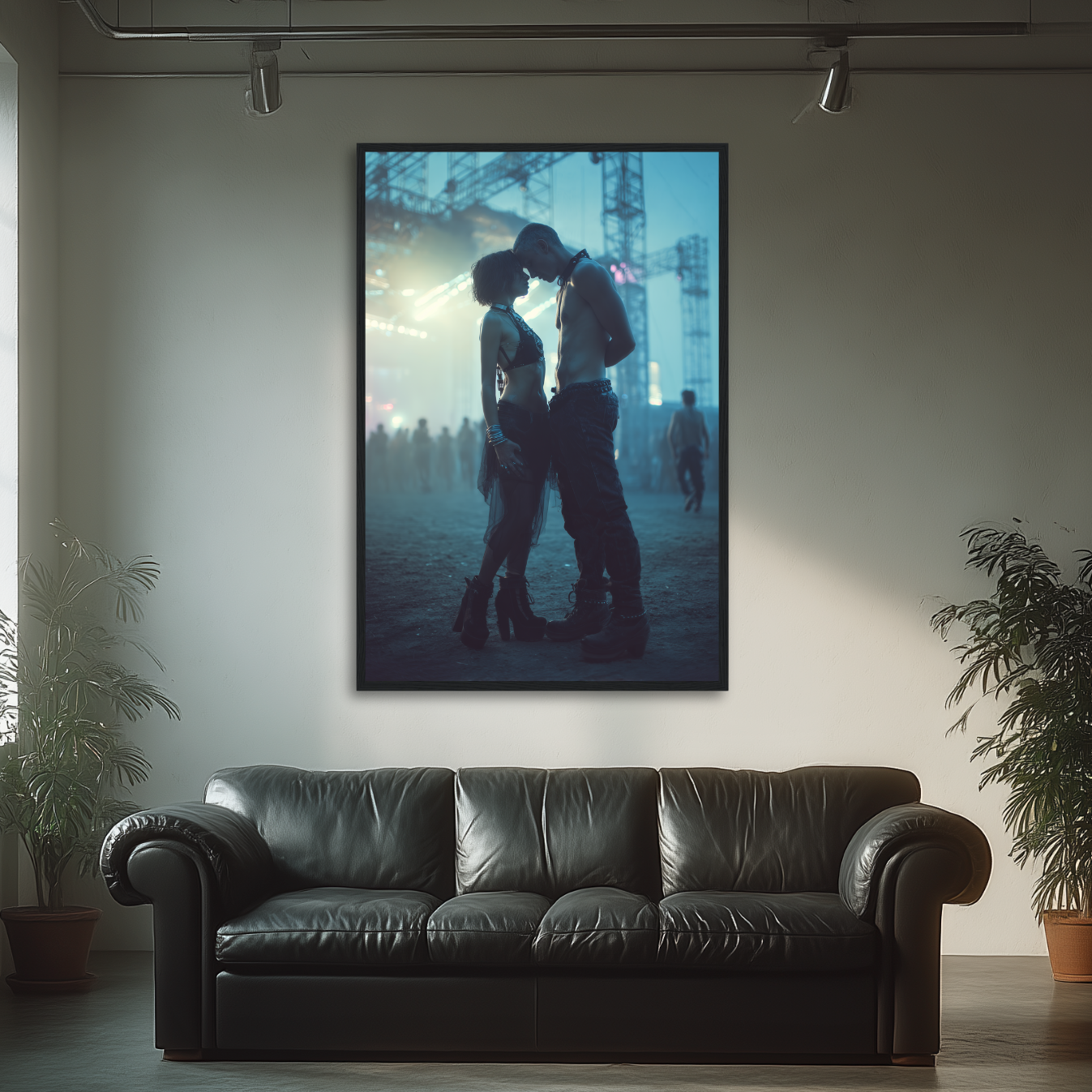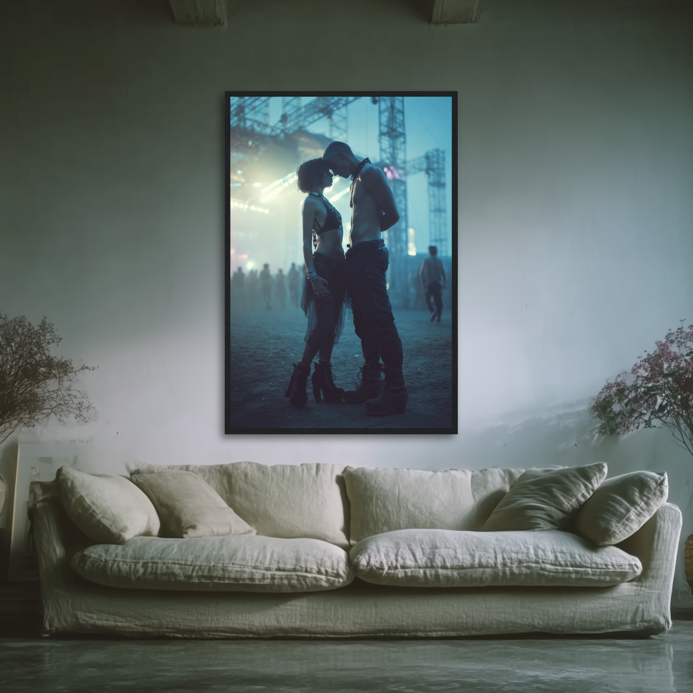 Two souls, one rhythm. In the haze of city lights and thumping bass, they move closer, not speaking, just feeling. Caught between stillness and electricity, this is a quiet kind of closeness only the night understands.