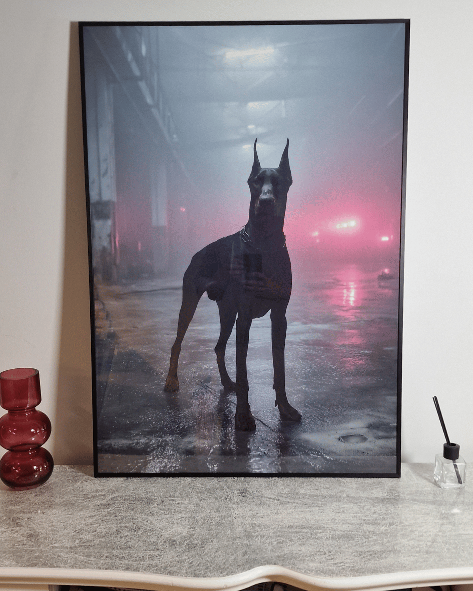 In the heart of the night, where shadows stretch and the music pulses like blood, he stands still, alert, unshaken. “Night’s Guardian” is a tribute to silent strength and unspoken loyalty.