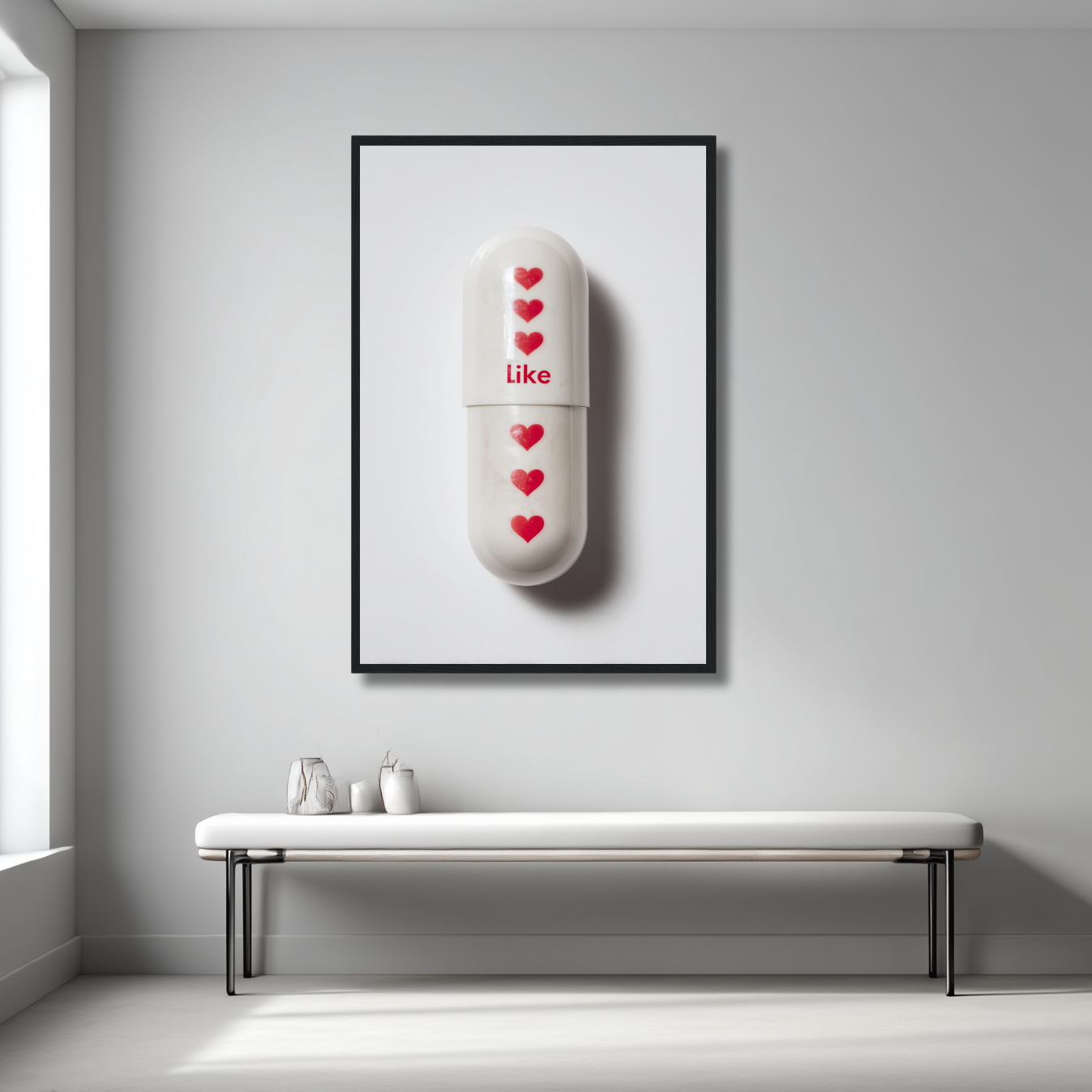 A single dose of modern craving. In a world where likes replace hugs, this piece captures our obsession with being seen, validated and wanted, with just one click.