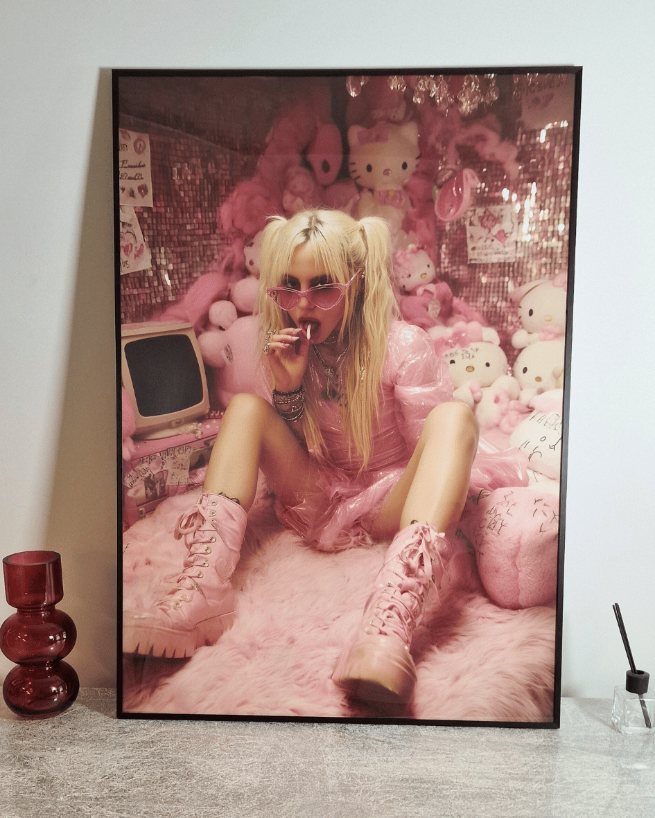 This artwork is a sugar-coated eye roll, a glitter-soaked boundary set in velvet. She’s not here for approval, and she’s definitely not here for you.