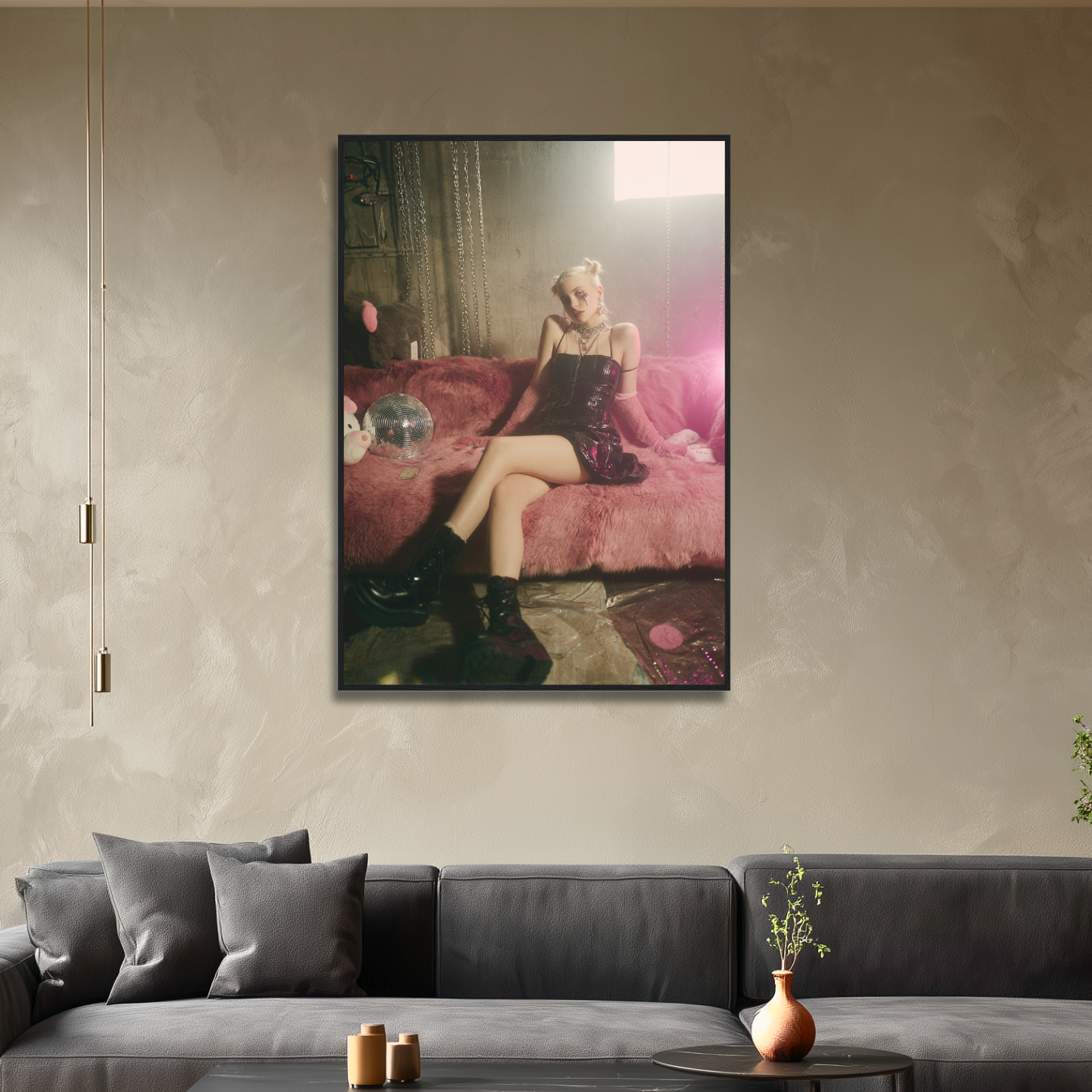 - Framed in solid pine wood – black finish